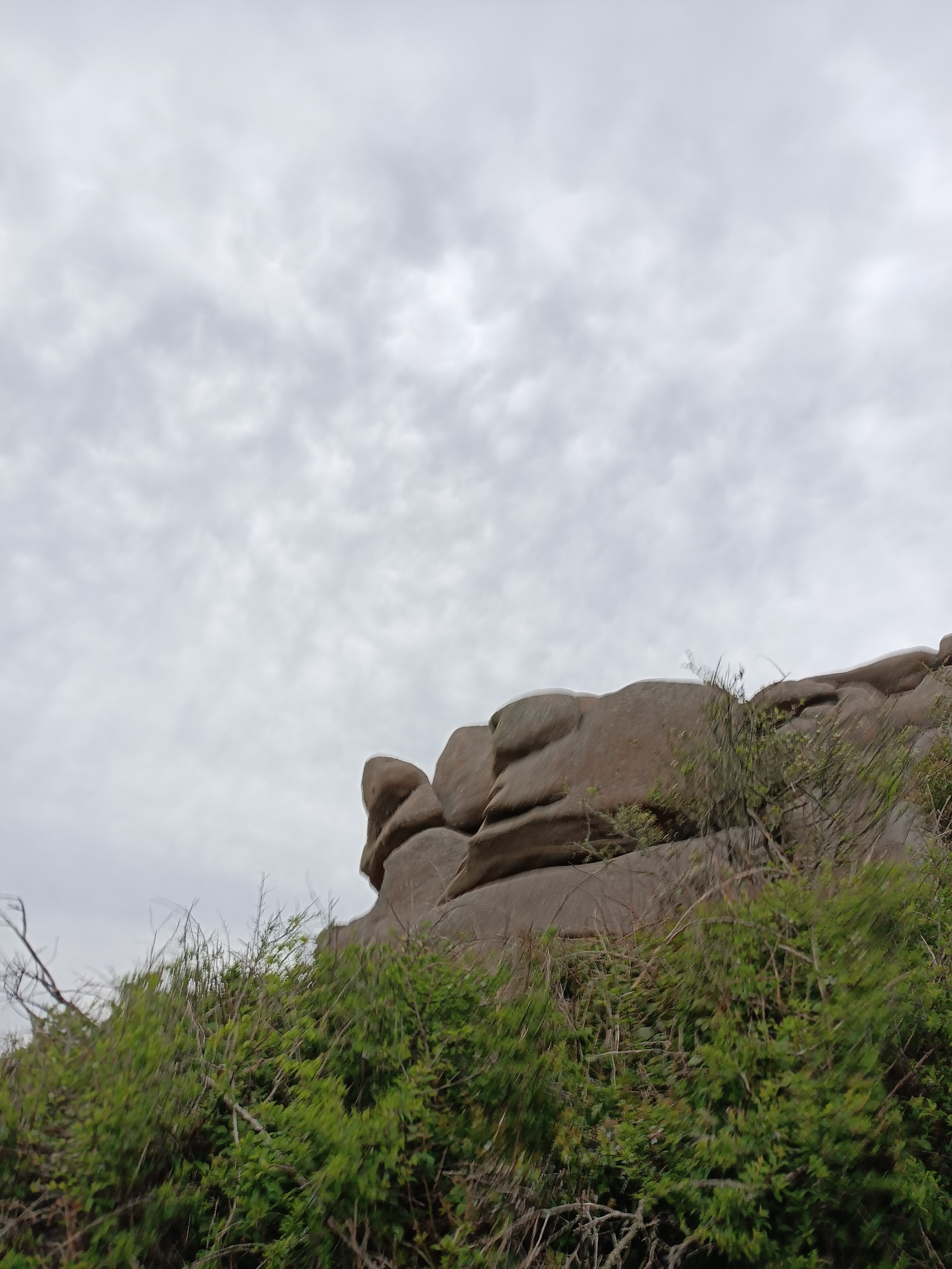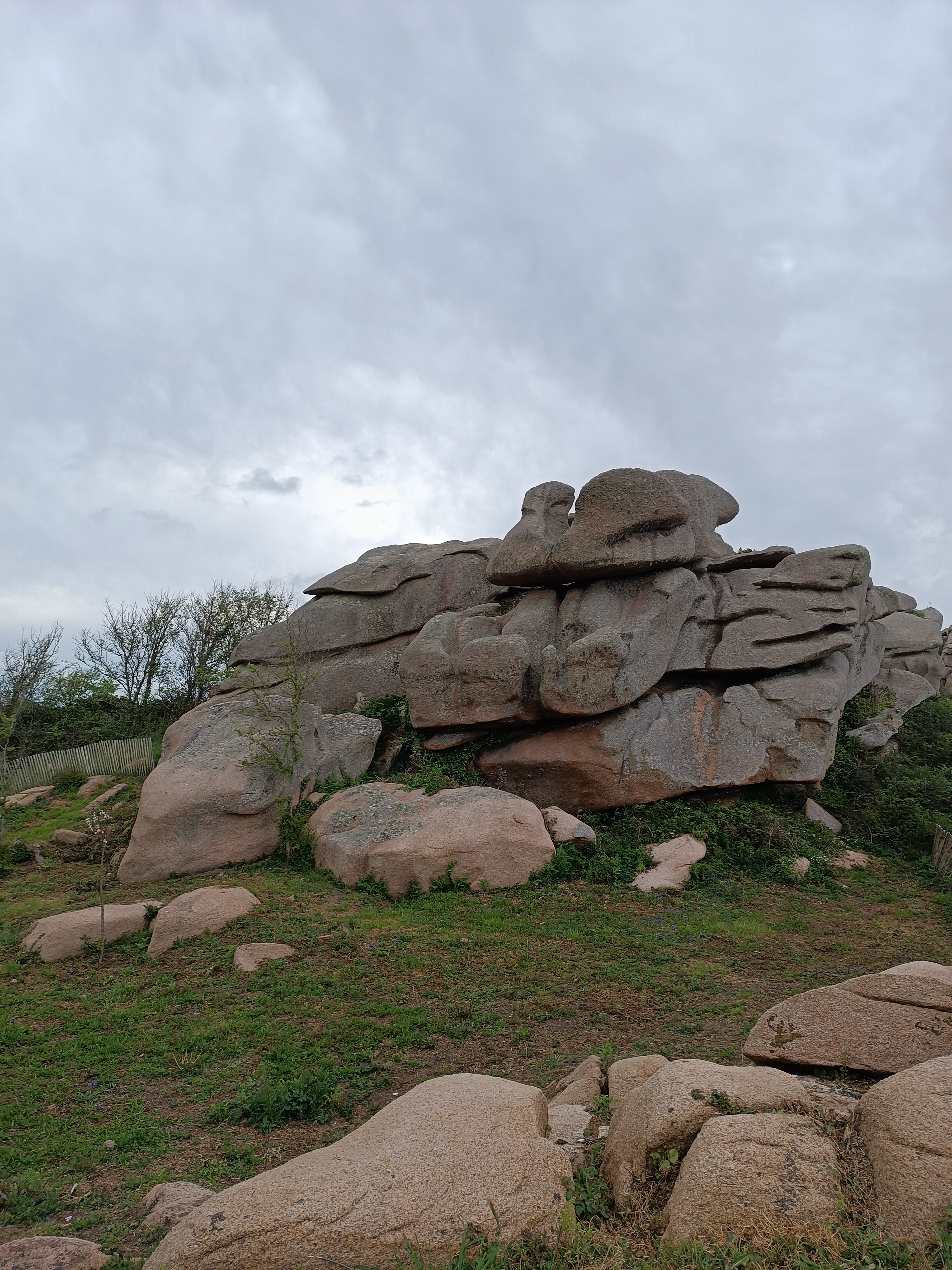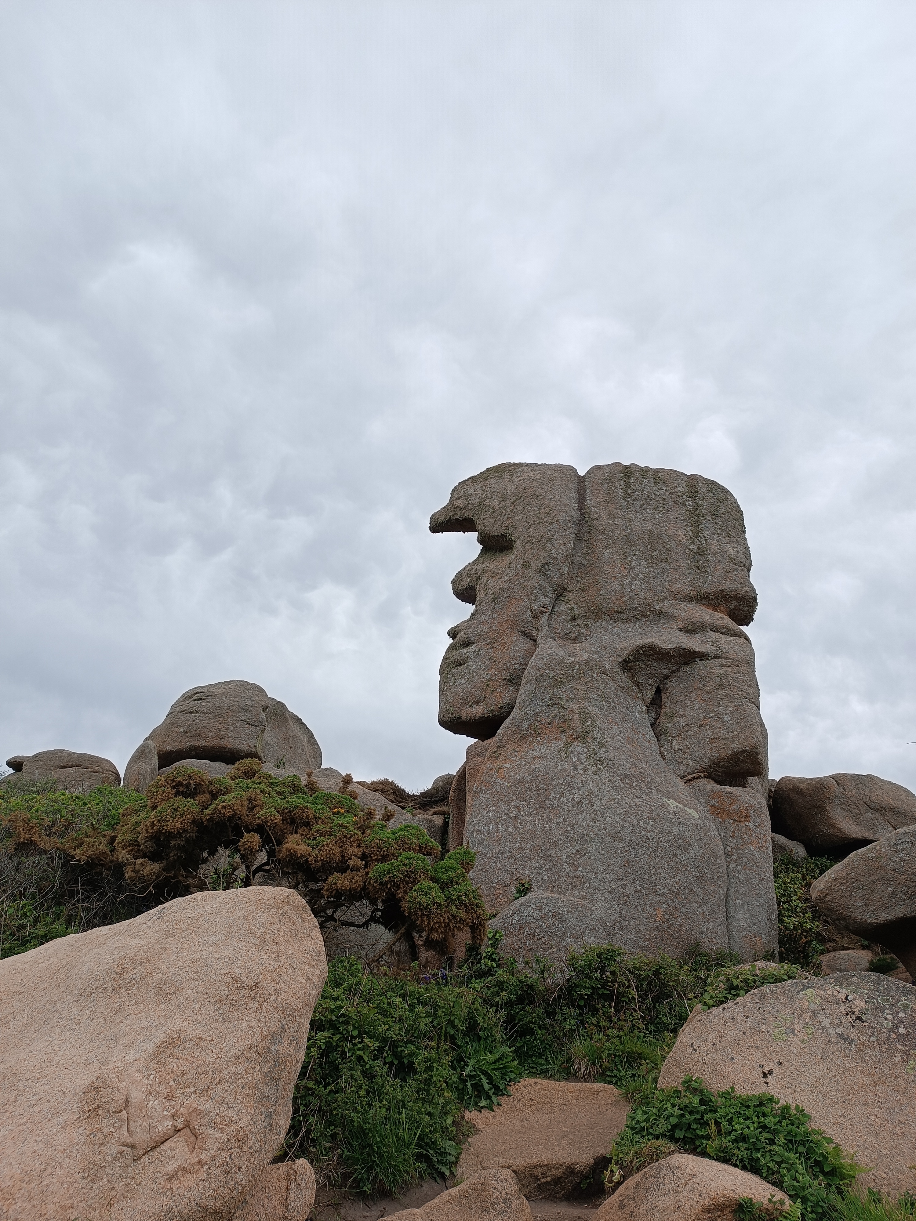 La côte de granit rose commence ici avec des rochers lissés par la mer et le vent qui donnent parfois naissance à de curieuses formes, comme celle-ci. Une demi-heure pour planifier.