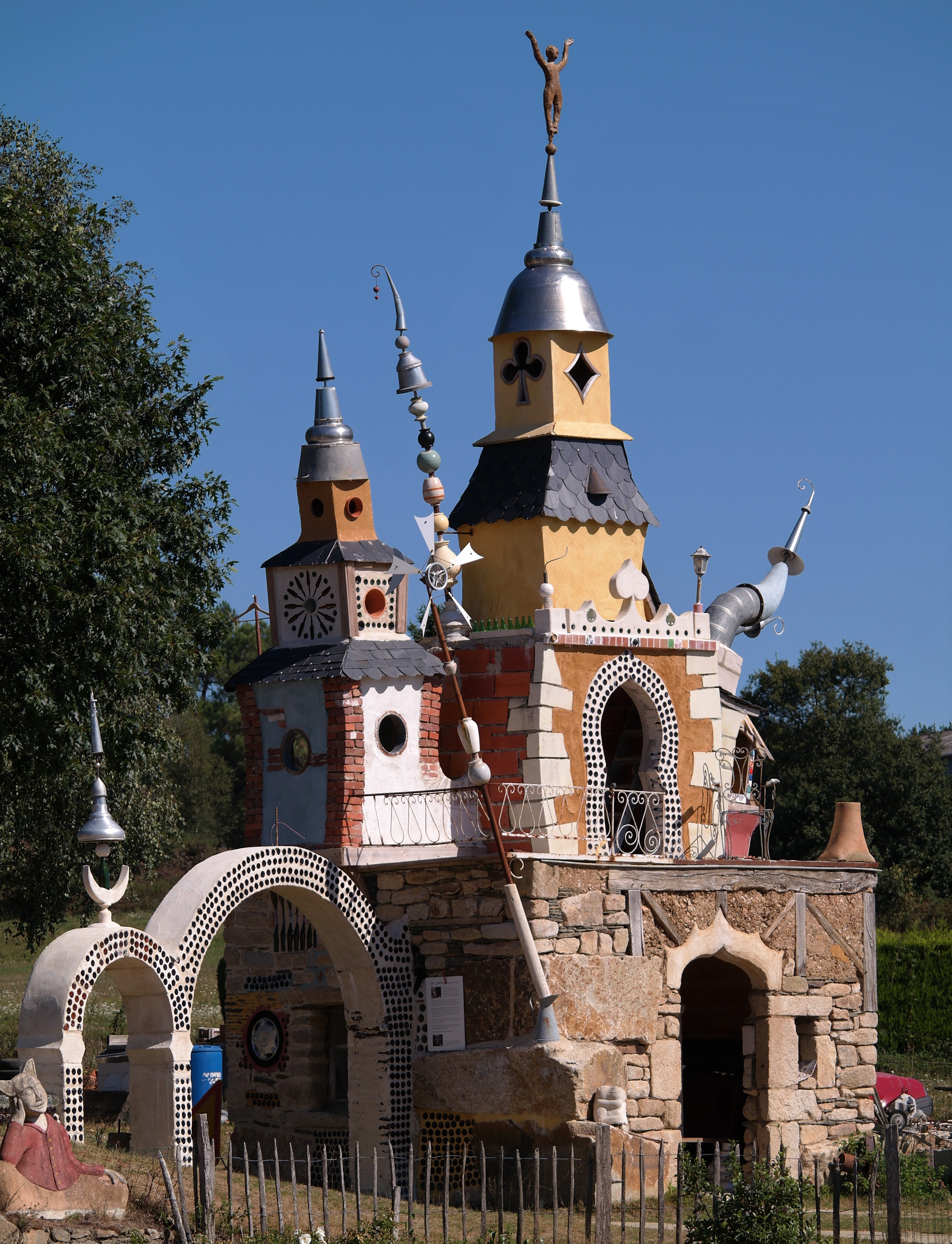 Très original. Quel travail de titan ! Un endroit rempli de rêves et de poésie, souvent en suspension ou avec le doux bruit de l'eau. Un chapiteau rappelant un cirque mais que pour les poules, des maisonnettes de fées ou de sorcières (au choix de son imagination), tordues par le vent, ou en forme d'escargot... Une tour Eiffel revisitée et les si nombreux personnages en fer avec des matériaux récupérés souvent mobiles et résonnant pour notre plus grand plaisir 💚 ALLEZ-Y. Je n'ai jamais vu ça ailleurs. Bravo l'artiste !! 👍