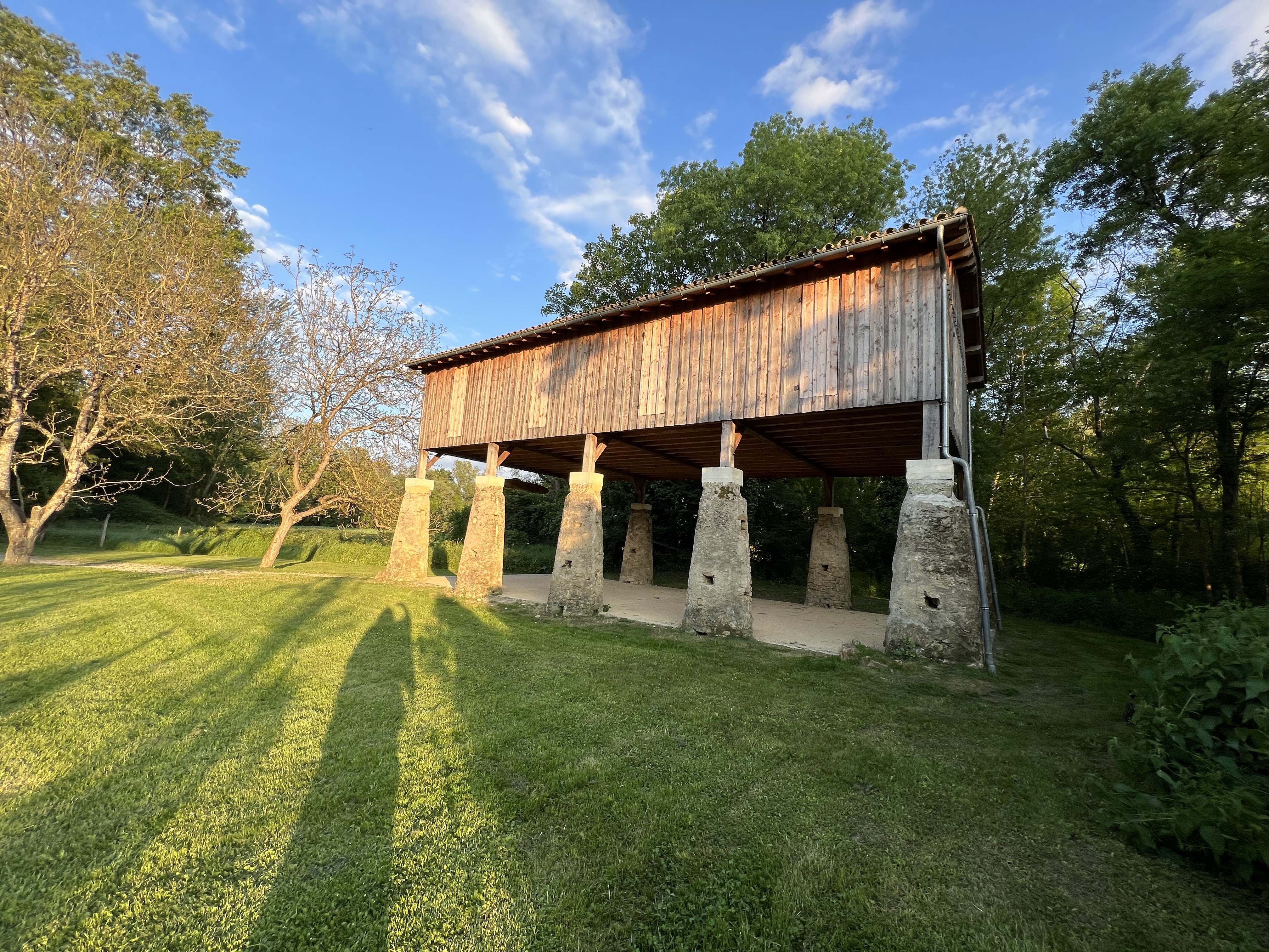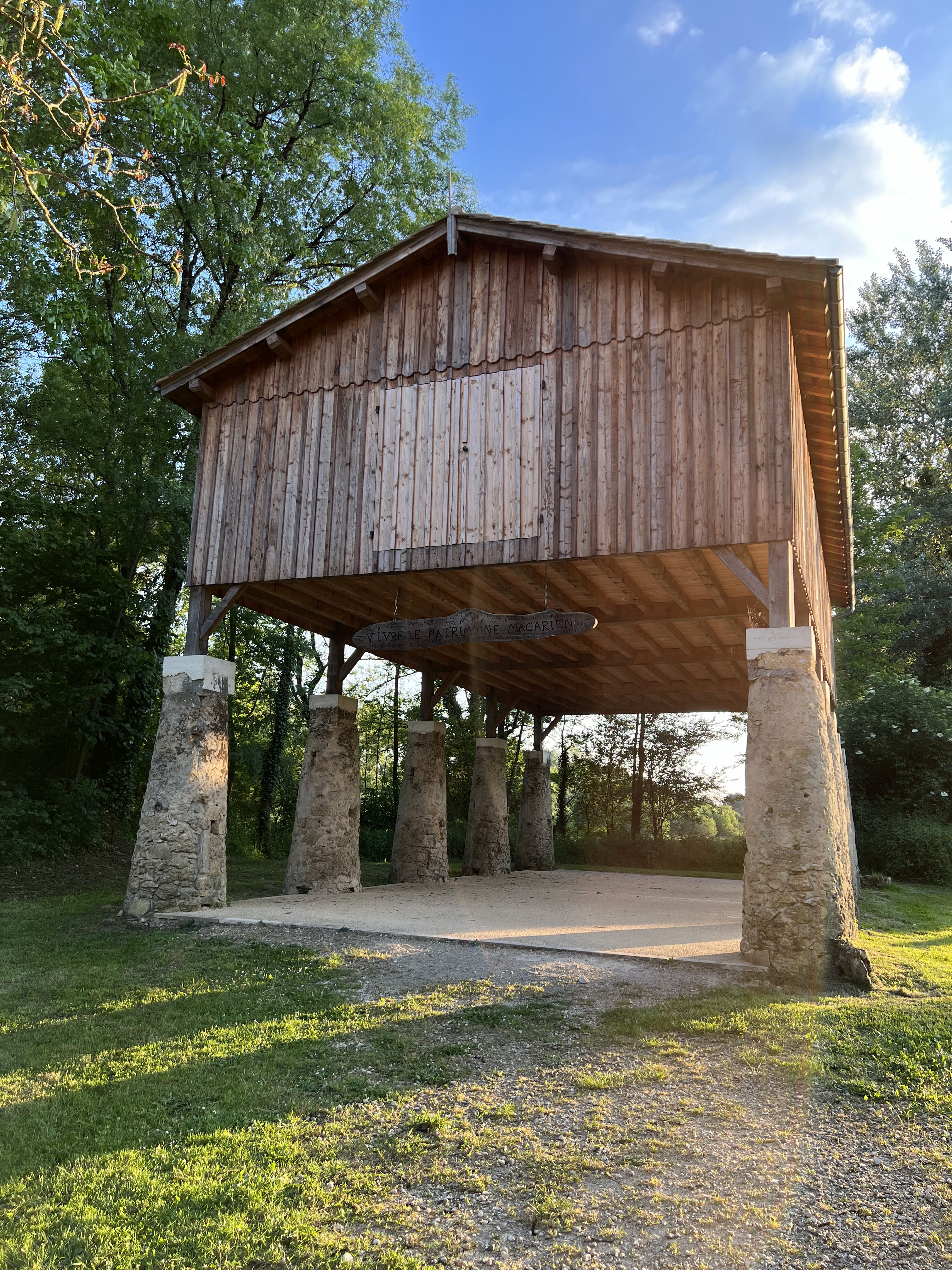 Un séchoir à tabac dont la partie en bois a été restaurée il y a peu. Il est sur pilotis en raison des inondations pour préserver le tabac. Dommage qu’il n’y a pas de plaque explicative. C’est en discutant avec des habitants que j’ai eu des explications.
