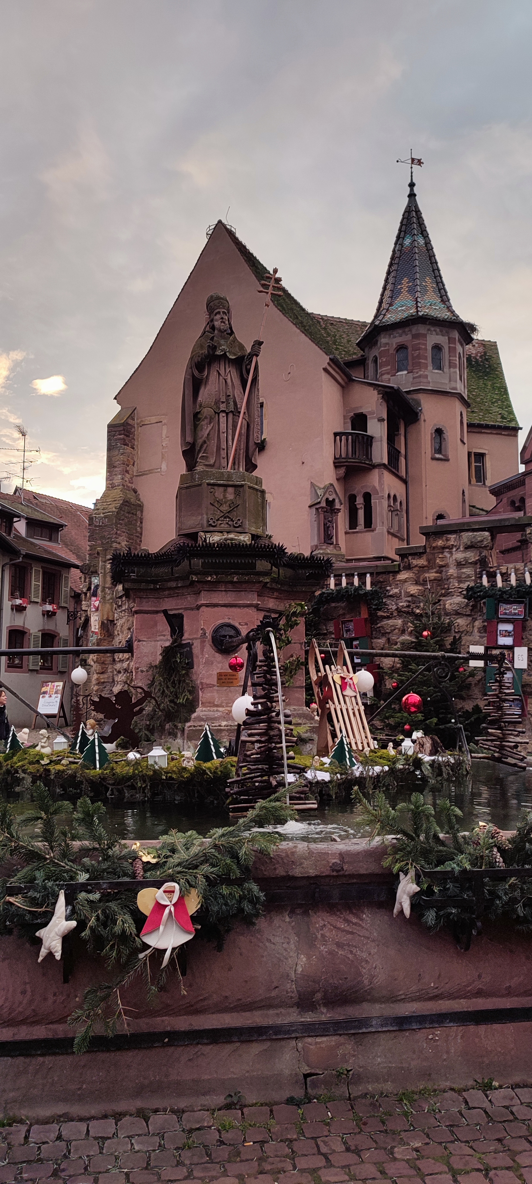 Supers décos ! Belle ambiance de Noël. Au bout du marché nous suivons le circuit des crèches qui suit le chemin pavé des remparts et nous fait faire sans nous en rendre compte une boucle qui nous ramène à notre point de départ du circuit des crèches 😳🫶 Nous redescendons alors la rue principale vers le vigneron Wolfberger en début de vieille ville pour dégustations avisées ... belle réserve de vins d'Alsace pour notre cave 😉