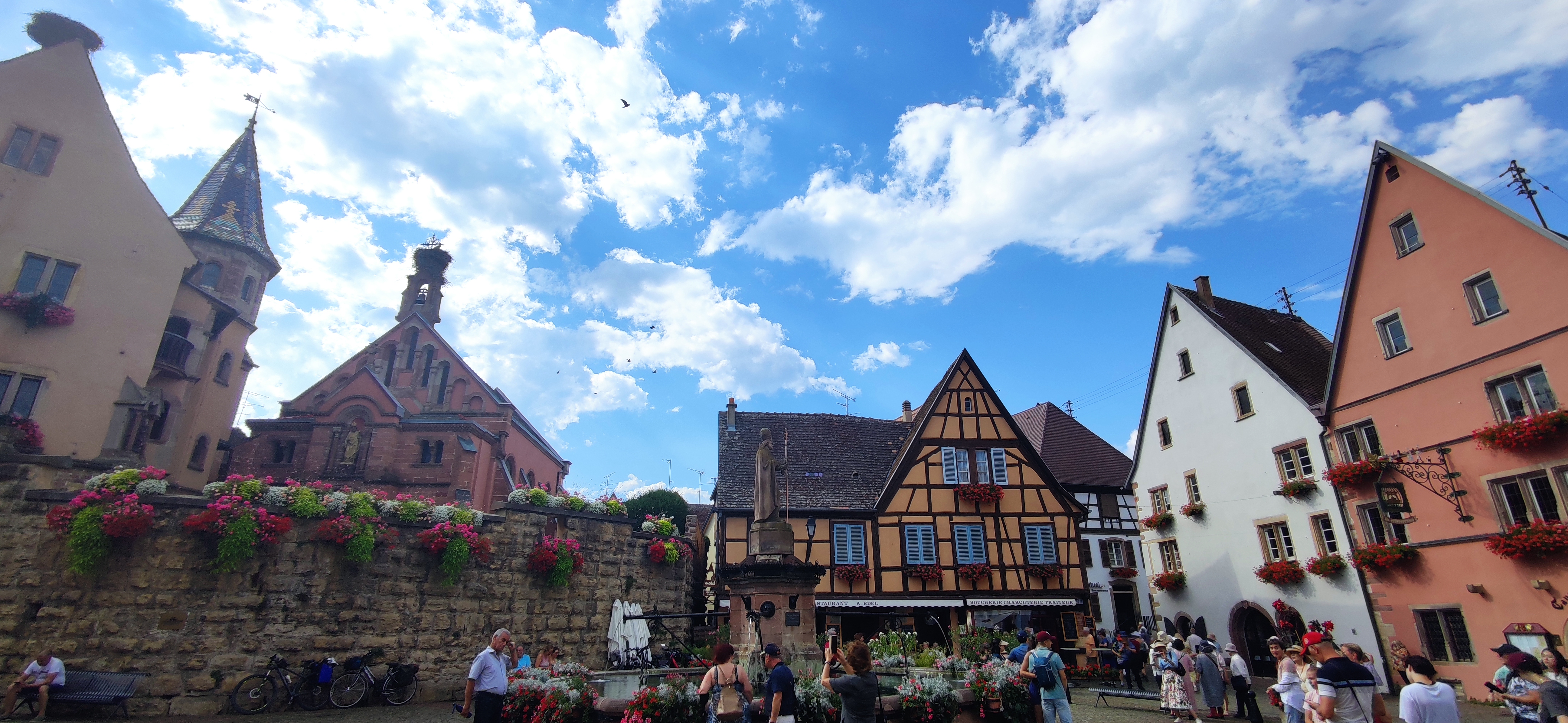 Joli petit village typique, l'un des préférés des Français, qui se visite facilement. Façades fleuries et colorées, moult cavistes et restaurants en font un lieu bondé (en été). Levez bien les yeux vers le toit de la petite église au coeur du village : plusieurs cigognes y ont fait leur nid ! A titre de comparaison, j'ai personnellement préféré visiter Kaysersberg, plus joli et surtout moins fréquenté.