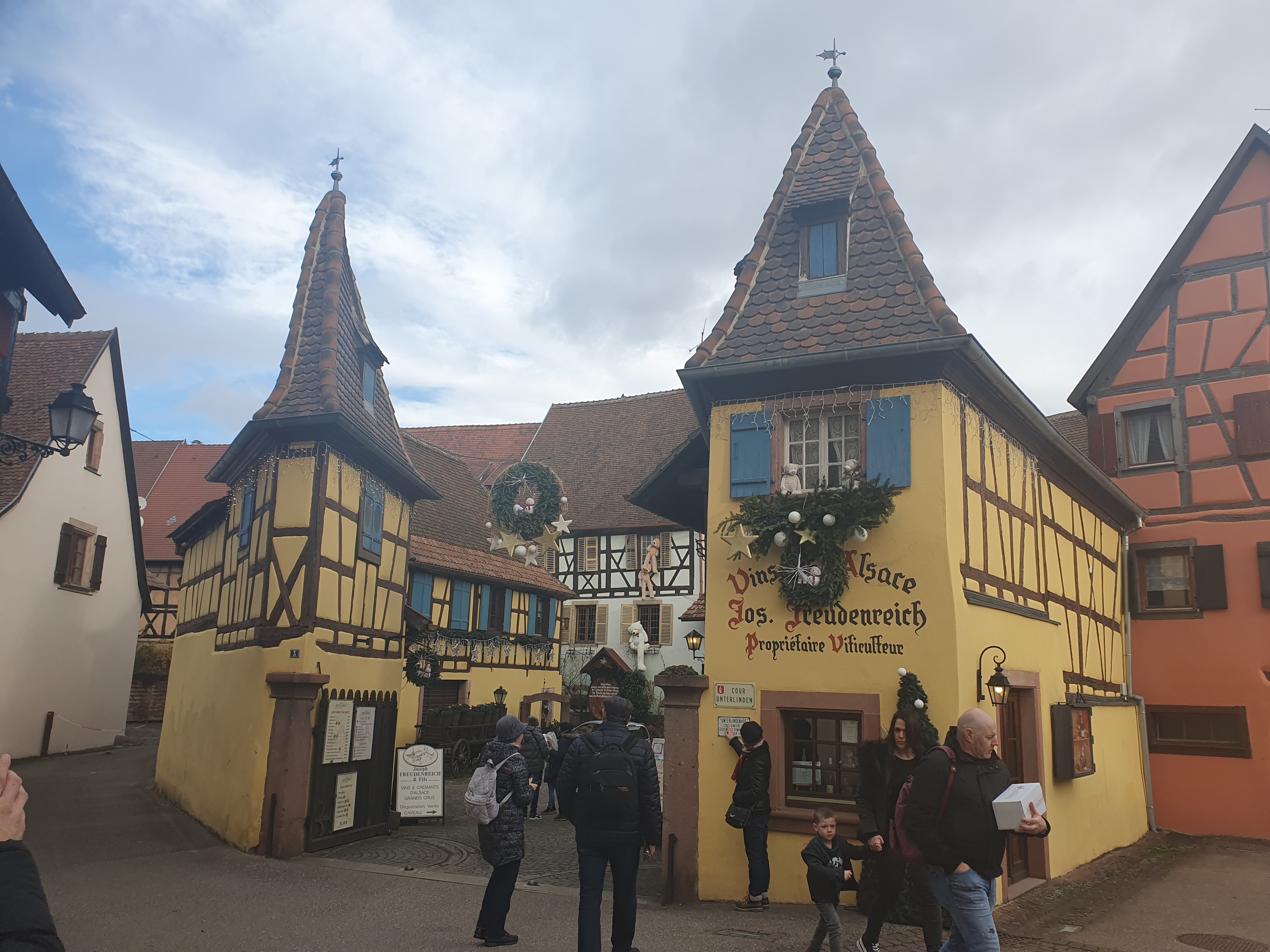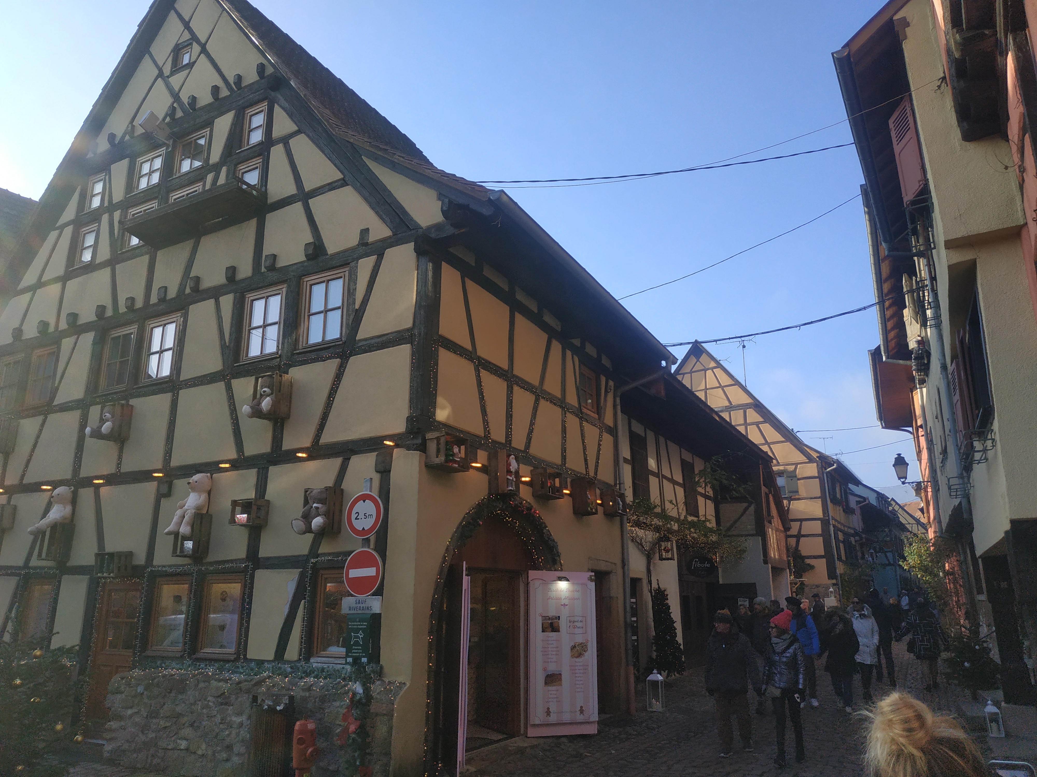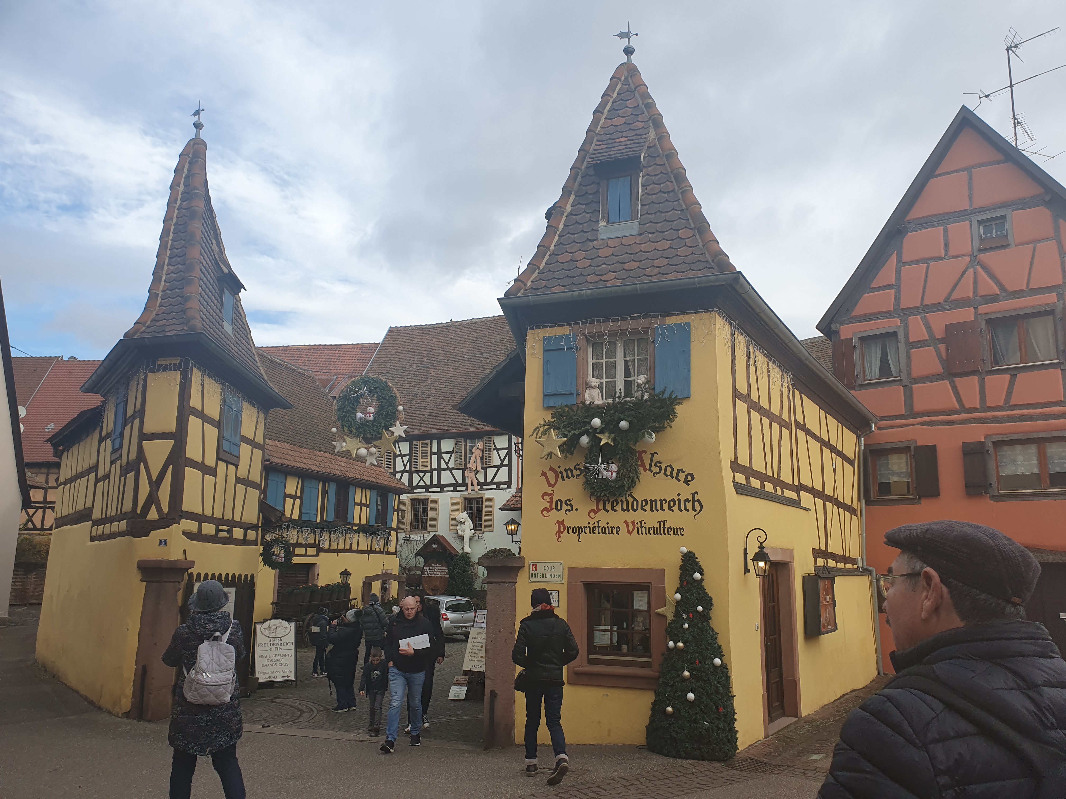 Venus pour le marché de Noël, très joli village Alsacien typique et traditionnel, des bâtisses aux commerces. Situé sur la route des vins, on y trouve forcément de nombreux vignerons, restaurants, auberges, boutiques de pain d'épices et de bredeles (biscuits locaux)