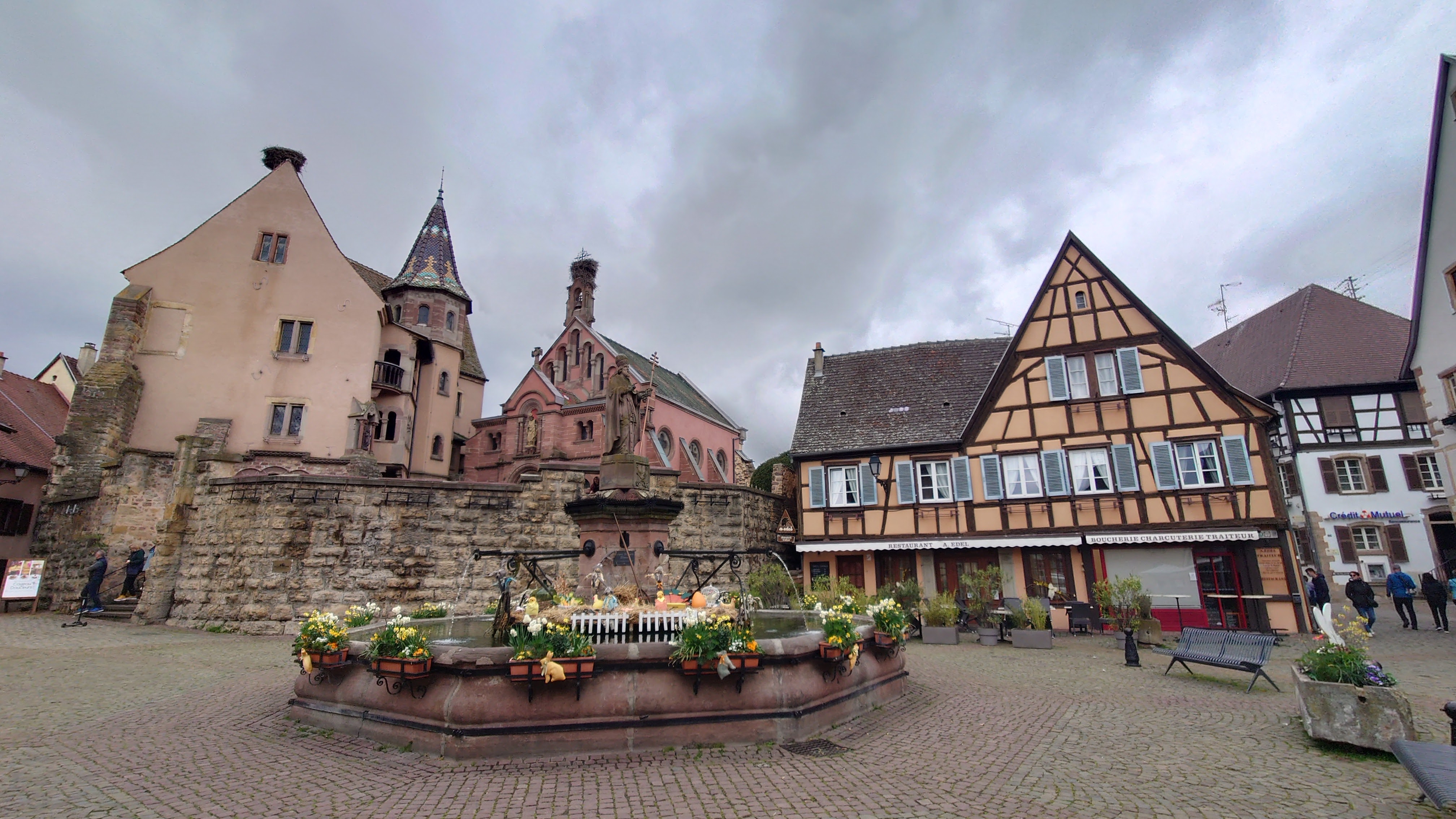 Un des musiciens beaux villages de France. Pas beaucoup de monde en mars et peu de magasins ouverts sauf les caves. Belle place principale, office du tourisme, et bien sûr les maisons typiques d Alsace dans un village circulaire avec de nombreuses fontaines. Grand parking payant à l entrée.